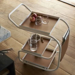 Opinion Ciatti – Zenzero Serving Trolley, Leather / Matt White (RAL 9016)