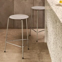 Fritz Hansen – High Dot Bar Stool H 65 Cm, Veneer Ash Black / Base Chrome