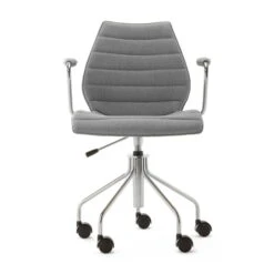 Kartell – Maui Soft Office Chair With Armrests And Castors, Chrome-plated Steel / Noma Grey