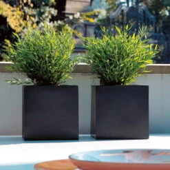 Amei planters are naturally beautiful and exceptionally robust. They are made of the technically sophisticated composite material Stonefiber – a mixture of polyester resin and ground stone, in which additionally inserted strands of fiberglass achieve a particularly high stability.