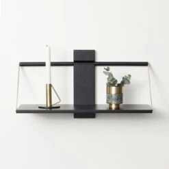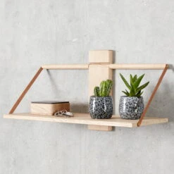 Wall shelf with leather straps