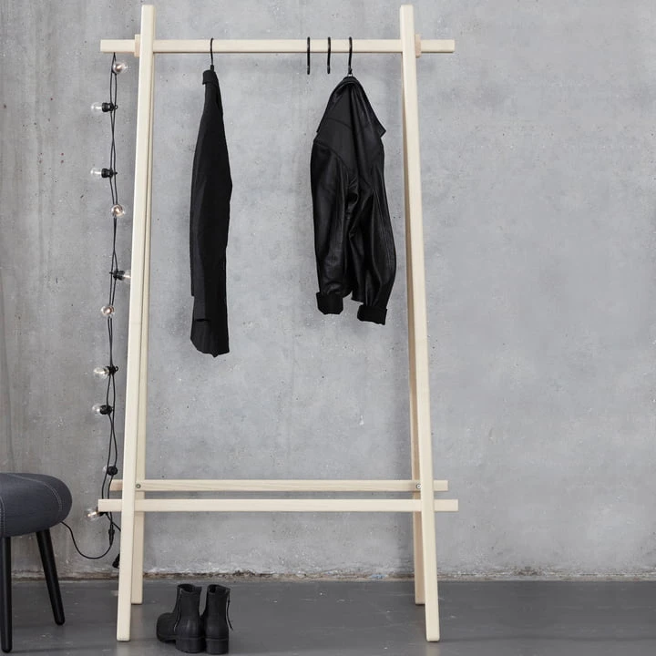 The coat stand by Andersen Furniture is a space-saving clothes rack that can be attached to the wall, as well as be transformed in a coat stand with the help of the corresponding connectors.