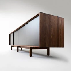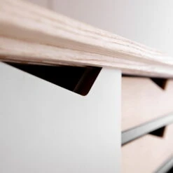 In addition, the sideboard can be equipped with drawers and shelves, which are equipped with noble mortise and tenon joints, so that S1 convinces not only visually, but also functionally. Doors and drawers can be mounted completely without tools. Thus, the appearance of the chest of drawers can be changed quickly and flexibly, depending on your needs. The drawer is a loose insert that can also be used for other purposes, for example, as a tray for serving. At S1 it is possible to drill out a cable grommet in the back wall (please be sure to specify the placement of the holes already when ordering!).