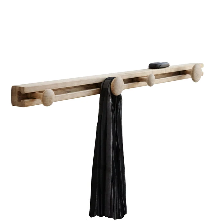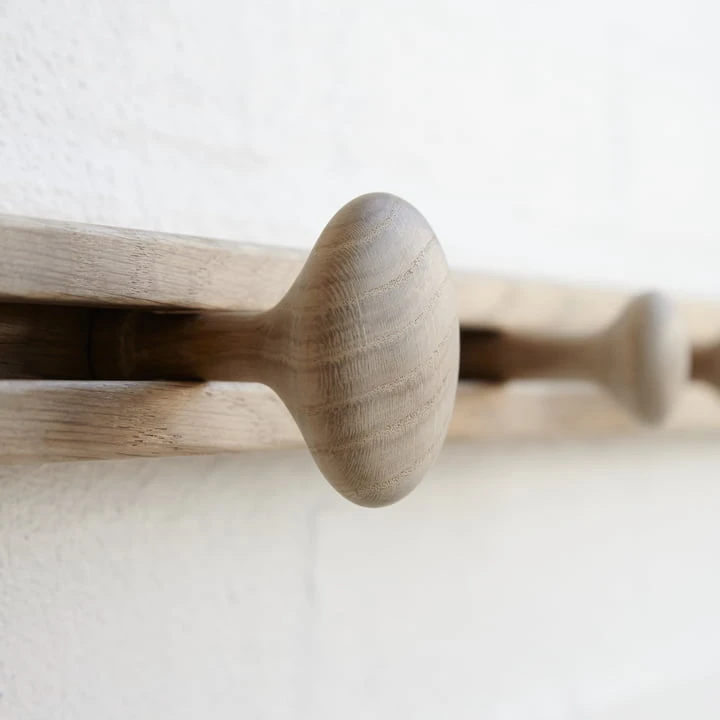 The Track Coat Rack comes in a minimalist design and is made of high-quality oak, so that it is an eye-catcher both in modern and in classic furnishings.