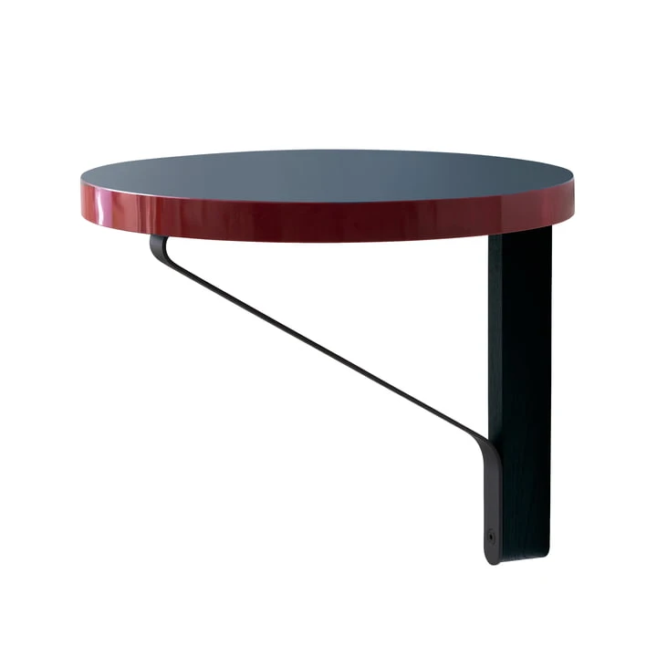 The surface of the round shelf consists of linoleum and high pressure laminate (HPL), which absorbs light in unusual ways, or reflects it. Over time, these materials form a very special surface.