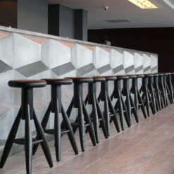 This high-quality barstool is made from oak and is available in soaped, black or white versions. The Rocket stool has a 73 cm height and a 44 cm diameter.