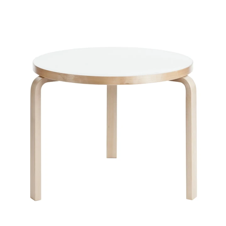 The 90B table by Artek conveys a relaxed familiarity and is a classic among the tables by Alvar Aalto. Created with a round tabletop and three legs in 1935, it has lost none of its timeless elegance to this date. Whether to eat, work or play, the table convinces its users with its own distinctive character that can be introduced into public or private interiors.