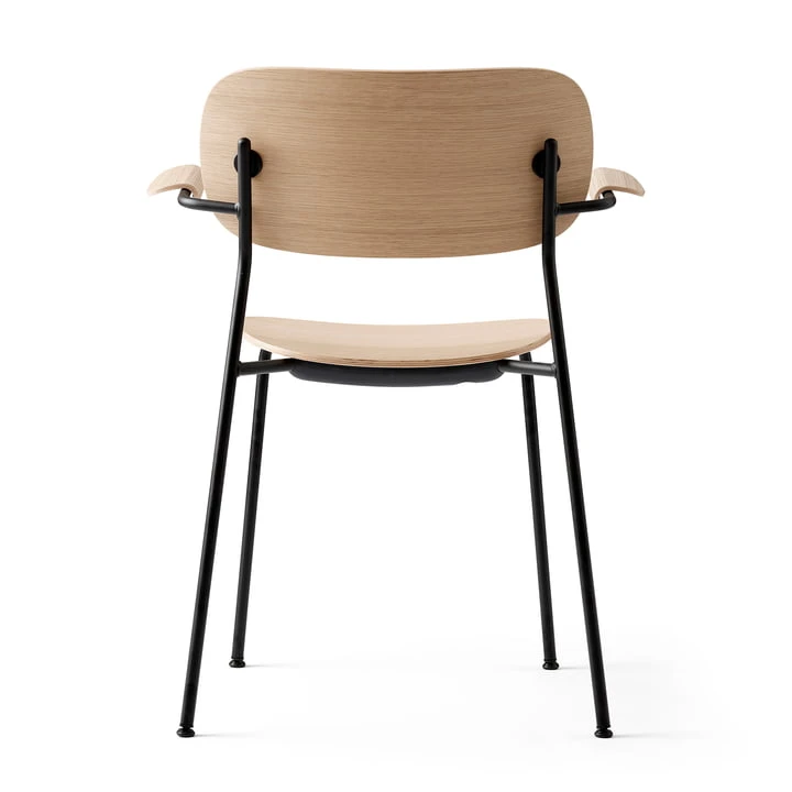 The Co Dining Chair offers comfort due to its wide, slightly curved backrest and armrests. A filigree steel frame serves as the chair’s base and provides a light and airy appearance. The aesthetic bears the signature of design studio Norm Architects, which has focused on warm-looking materials and soft curves for the Co Dining Chair.