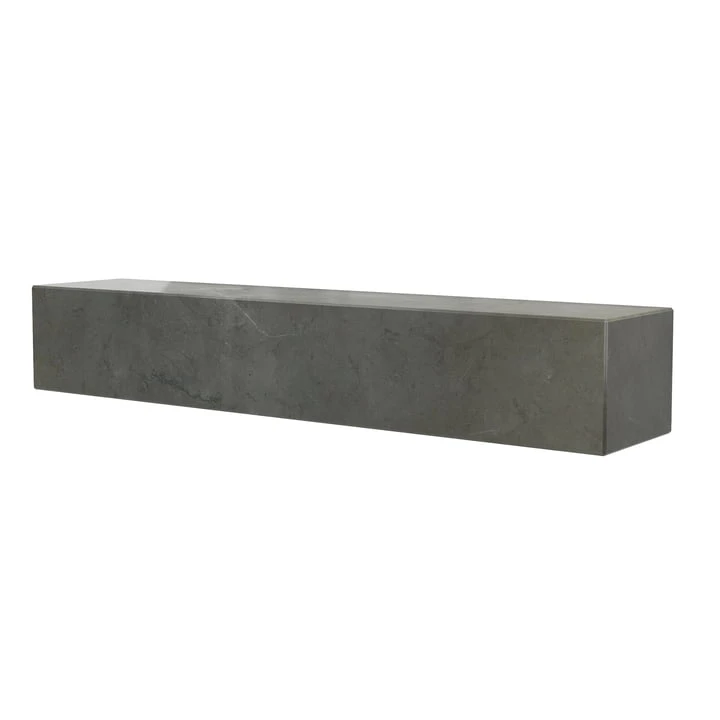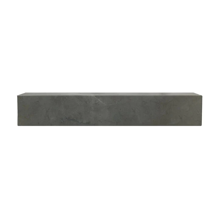 The minimalist block profile of the handcrafted shelf is formed from Grey Kendzo, a rich, brilliant white veined marble chosen by Audo for its inherent beauty and light-reflecting properties.