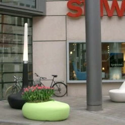 The planter is designed to be filled with sand. This ensures a high degree of stability when it is filled and makes it easy to transport when empty. Several planters can also be stacked on top of each other for easier transport.