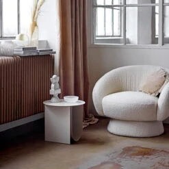 Cher side table is made of metal and powder coated in a subtle shade of gray. It is designed for a load of up to 10 kilograms.