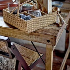 The Loupe chair from the Creative Collection by Bloomingville is made of rubber wood with sugar cane on the back and seat. It can be folded up. The stylish chair is an equally functional and aesthetic choice.