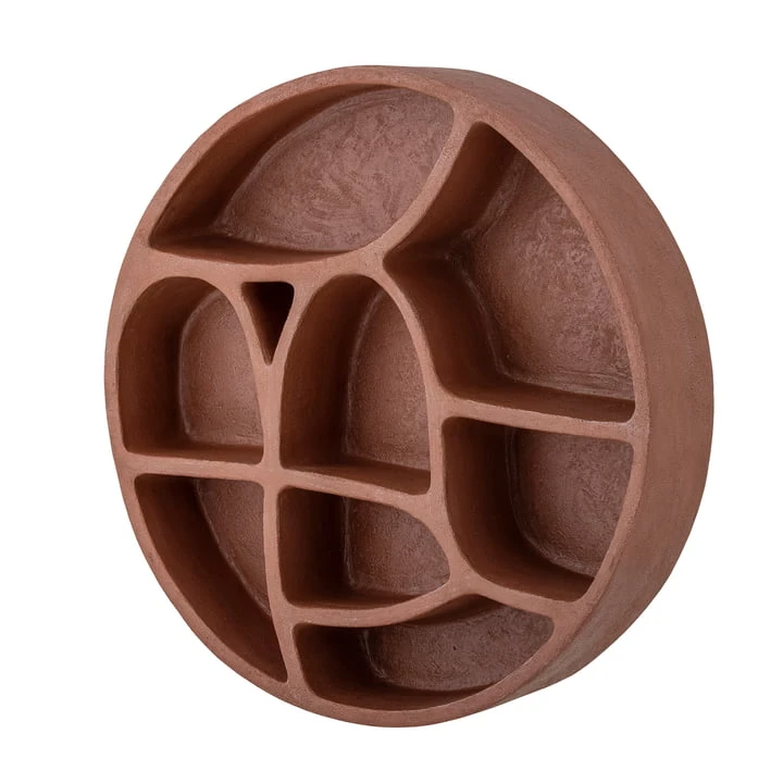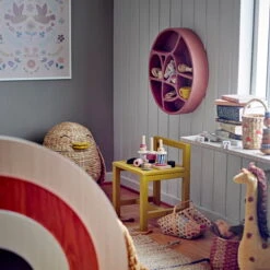 The Palmer shelf from Bloomingville Mini is an organically shaped shelf with small compartments for all the treasures in the mini room. It is made of polyresin in a muted red color and can be mounted directly on the wall.