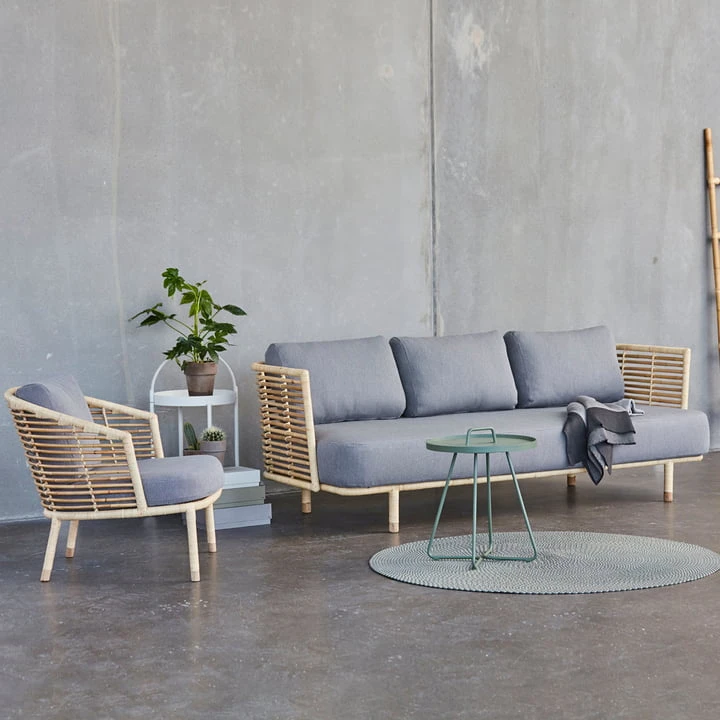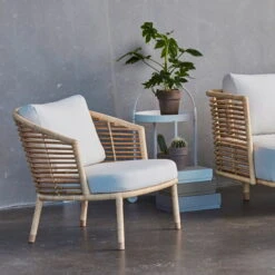 The Sense Lounge chair Indoor from Cane-line provides coziness in the ambience and creates with its special retro design a real feel-good atmosphere in the room. The lounge chair is made of rattan, a natural material that provides warmth and at the same time appears light and airy. Comfort is given to the armchair by its seat cushions, which are covered with a unique high-tech textile fabric that is durable, heat-permeable, allergy-friendly and easy to clean. The cover can be effortlessly removed and washed at 30Β°C.