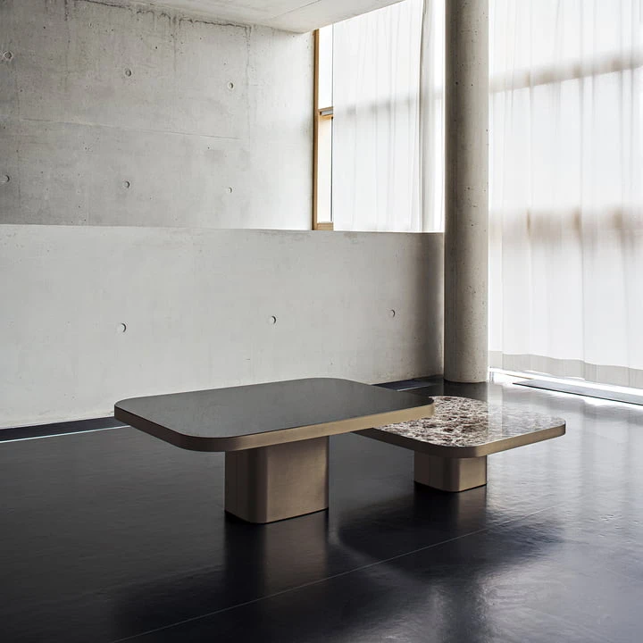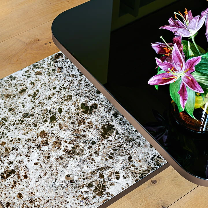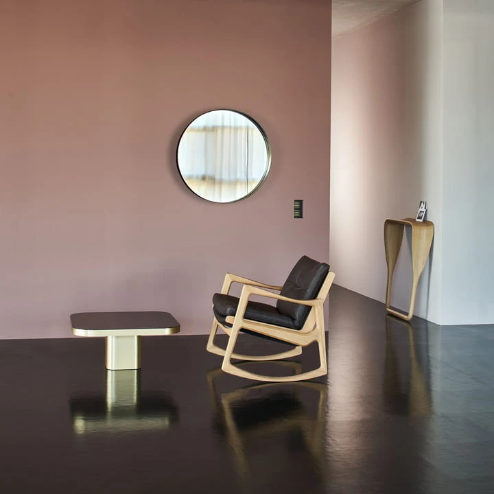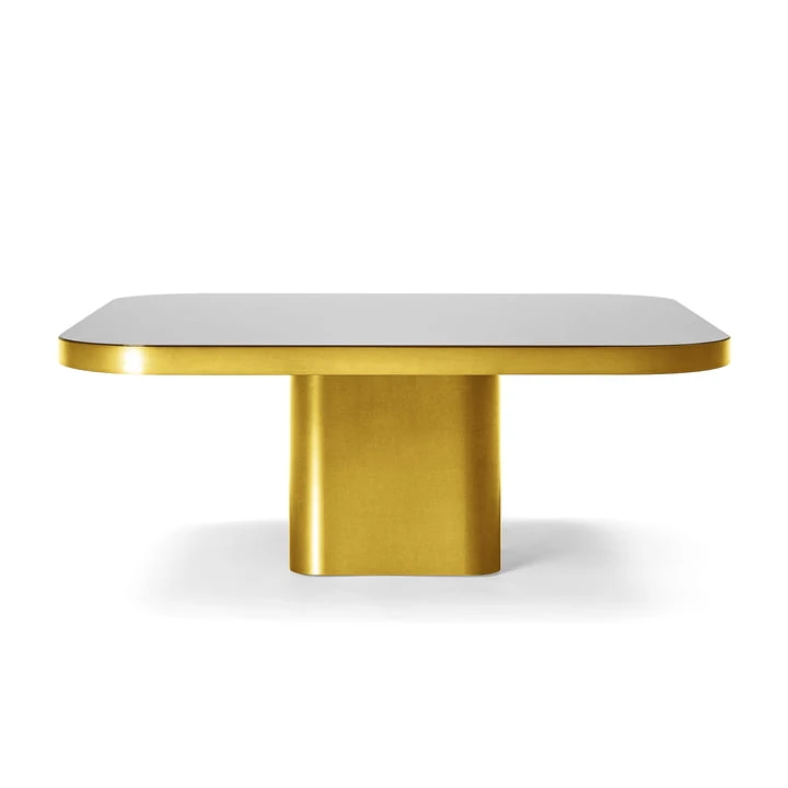 The Bow Coffee table from ClassiCon is inspired by the lines and designs of the 1970s. 2022 the elegant Bow table was designed by Brazilian Guliherme Torres. The metal covered surface of the structure is typical of the 70s, but has a distinct contemporary touch. The glass-clad tabletop literally floats above a base with rounded edges. Bow can be used either as a couch or side table, and its large table surface offers an extraordinary amount of space.