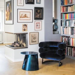 The Pli side table owes its name to its base with a design of complex structuring, resembling a large polished gemstone with its different creases and folds, providing fascinating reflections of colour throughout the room and, above all, offers interesting lighting effects.