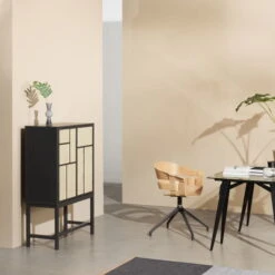 The reed wickerwork gives the cabinet a transparent surface, but also conveys a sense of depth. Air Gets a unique personality by mixing a refined Scandinavian expression with a touch of French style and elegance. The use of reed in this piece of furniture is unexpected, but makes the design seem light and fresh. By going beyond the usual boundaries, the Scandinavian design is reimagined and makes the cabinet an eye-catcher in the living area.