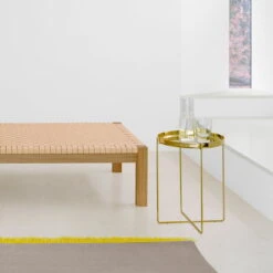 Resting on a delicate frame base, the minimalist tray comes with a wide edge – an elegant and simultaneously practical frame for beverages or decorative accessories, which can either be easily transported or stylishly placed on the e15 Tray & Side Table.