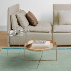 Available in two different heights and sizes, the table can be used either as a side table or as a coffee table. A particularly elegant solution is a combination of two tables of different sizes, which results in an interesting yet flexible table ensemble.