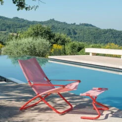 The Snooze recliner is the result of the reinterpretation of a true classic from Emu , the Siesta from the early 80s. The Snooze recliner brings the practical and comfortable features into the modern era. This reinterpretation of a simple and highly comfortable outdoor furniture was designed by Alfredo Chiaramonte and Marco Marin.