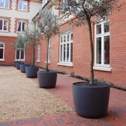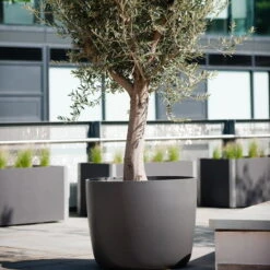 The Kyoto plant pot from Eternit is a classic container for olive trees, boxwoods and co., with a supple fibre cement surface for a stylish expression on terraces and balconies. Thanks to its generous dimensions, it is also wonderfully suitable as a pot next to the entrance door or as a landscape decoration in the courtyard of a large building.