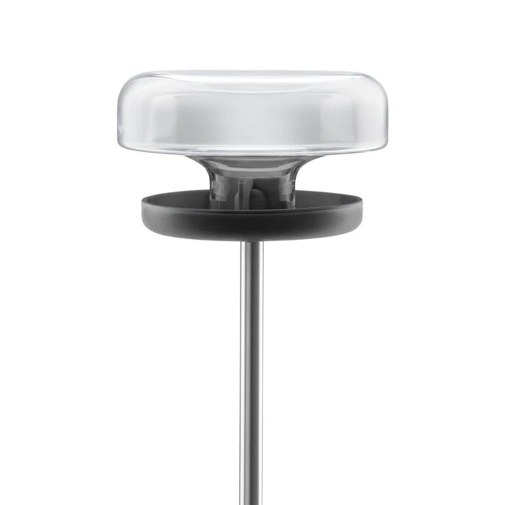 The hand-blown glass vessel is made of frost-resistant soda-lime glass and can be easily refilled through the large opening. The round, mushroom-shaped glass sits on a wide drip tray so that the food can slide evenly on all sides and remains dry until it is used. This ensures that there is always enough food for the feathered friends – even when you are traveling.