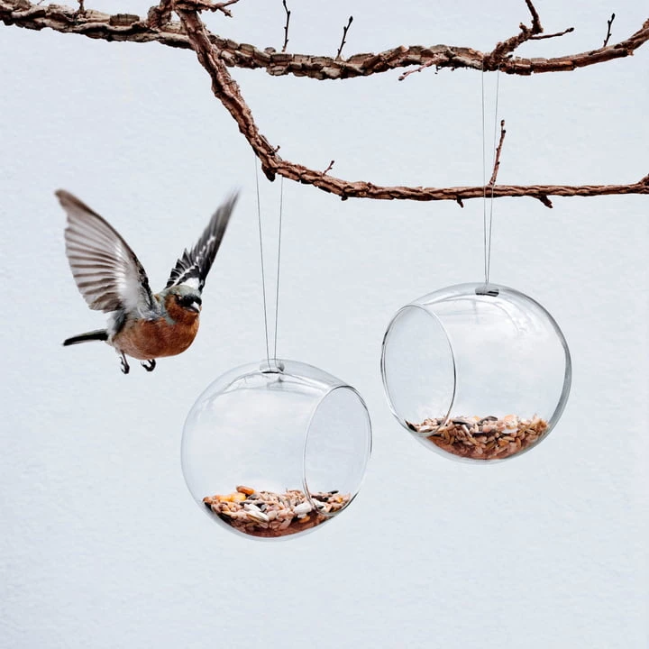 The Mini Bird Feeder by Eva Solo were designed to resemble “floating” weber birds nests. Contrasting their models, the Eva Solo Mini Bird Feeders consist of clear glass, so that the birds may be observed undisturbed. The spheres are charming and decorative and especially suitable for the garden or the balcony.