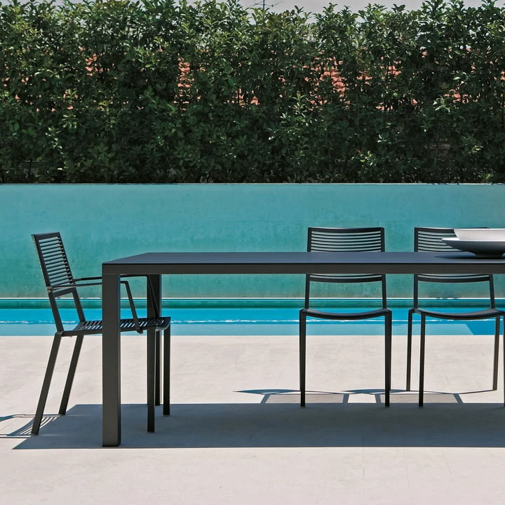 The Easy table from Fast belongs to the series of seating and tables for outdoor use of the same name, which can be used universally with its reduced design. It is suitable for private use as well as for public spaces. The furniture of the series also cuts a fine figure indoors.