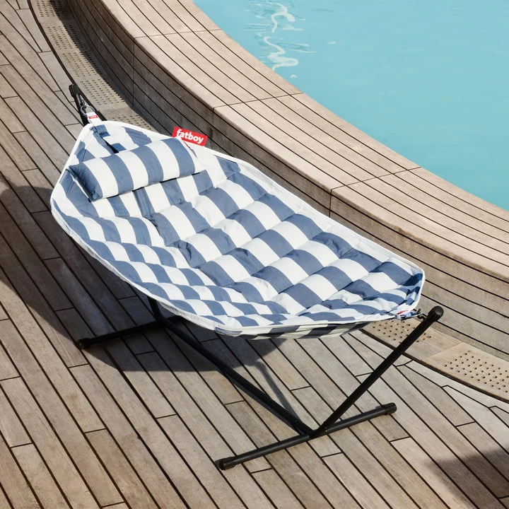 The hammock Headdemock Superb from Fatboy invites you to relax indoors and outdoors. On the urban balcony, in the home garden, in the park, on vacation and also used in the living room, you can forget the worries of everyday life in the hammock and let your soul dangle.