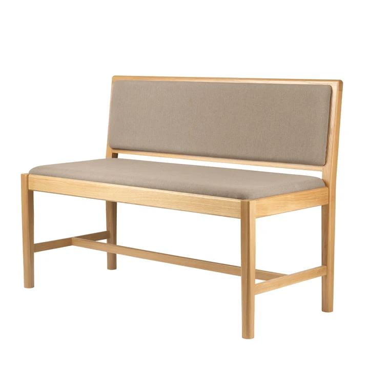 The J176 Sønderborg bench by FDB Møbler was designed by Mogens Koch and convinces with its timeless shape and the upholstered seat and back. The frame of the classic bench is made of solid FSC®-certified oak wood. The cover is available in different materials.