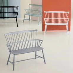 The bench is made of beech wood with a fanned out backrest. The wood used is FSC® certified and comes from European forests.