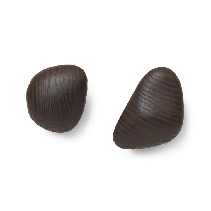 The Cairn Wall Hooks feature soft curves and sculptural details, adding an artistic and functional touch to your wall. Carved from solid, FSCâ„¢-certified ash wood, these organic wooden hooks are inspired by cairns often piled for memorial purposes. They have delicate, rounded edges and have been carbonized to give them a distinctive look. The Cairn Hooks come as a set of 2, so you can effortlessly create space for coats in the hallway, towels in the bathroom or textiles in the kitchen. The charred smell of the wood will fade over time.