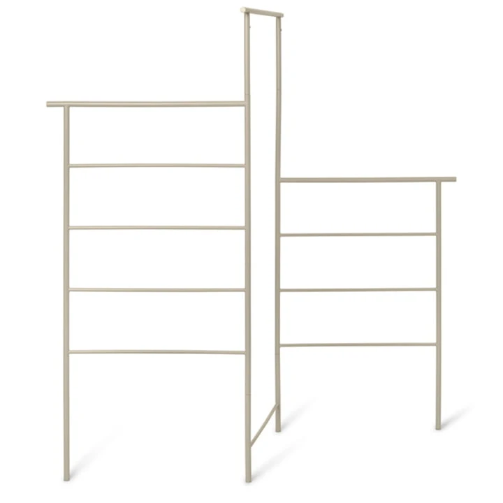 As an alternative to the wardrobe, Dora makes the hearts of all minimalists beat faster. The clothes rack looks great in the bedroom and functions there, for example, as a room divider. Used as a stylish clothes rack, it not only looks good, but can also be folded up to save space after use. In the hallway or entrance area, Dora convinces with many hanging options and offers many coats and jackets a nice place.