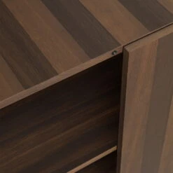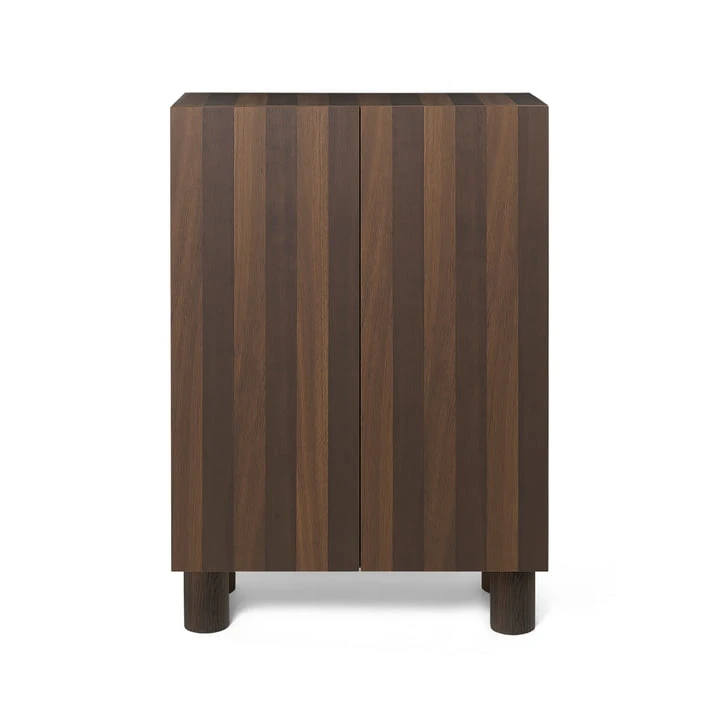 Made of FSCâ„¢ Mix-certified wood, the cabinet features striped wood details in oak veneer achieved through an intricate and time-consuming joinery technique known as marquetry. While maintaining the simple, ornate expression of the striped front, the cabinet doors open and close with a hidden mechanism to eliminate visible handles.