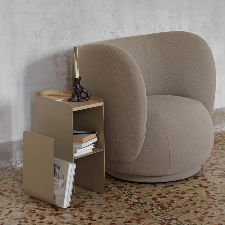 Enhance your space with this elegant and functional side table. Vault side table. The name of the table reflects the curved shape of the powder-coated steel frame. You can store your favorite books or magazines in the curved side, while the practical shelf is ideal for displaying decorative items. The tabletop itself is made of beautiful, natural marble, which gives the Vault Side Table a warm, refined expression.