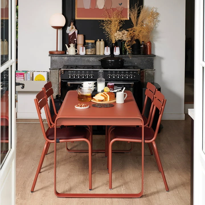 The established Parisian design studio Pagnon Pelhaître has designed the Bellevie collection for Fermob . With it the French way of life comes all by itself: With the design it was important that Bellevie already visually transports a warm atmosphere and joy. The Bellevie table seats 8 to 10 people comfortably and fits perfectly with the Bellevie Bench from Fermob .