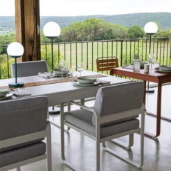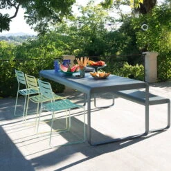 Fermob manufactures the Bellevie Garden table with a table top made of electro-galvanized steel and a frame made of aluminum. The material is highly protective treated by the outdoor specialist Fermob for outdoor use and coated with UV-resistant powder coating.