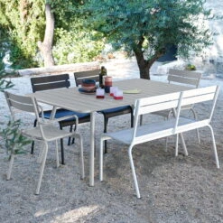 Made of extruded aluminium slats or tubes, the table is perfectly Luxembourg table is ideally suited for outdoor use.