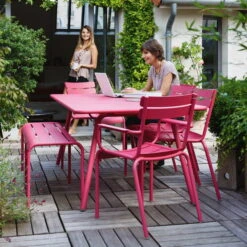 Thanks to its protective treatment, the table is both water-repellent and UV-resistant. In many different colours, different sizes and with matching chairs, benches and sun loungers, the individual Fermob furniture can either be colour-coordinated or combined from over 20 colours as desired.