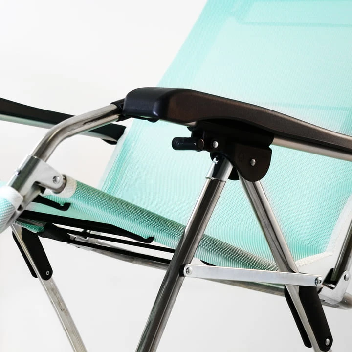 The frame of the Amida The frame of the sun lounger is made of light aluminium and can be folded up easily and comfortably. The cover of the lounger from Fiam is made of Textilene, a high-tech fabric that is weatherproof and UV-resistant. The synthetic fabric is so flexible and air-permeable that comfortable sitting and lying on the outdoor chair is guaranteed. The modern textile is also easy to care for and clean.