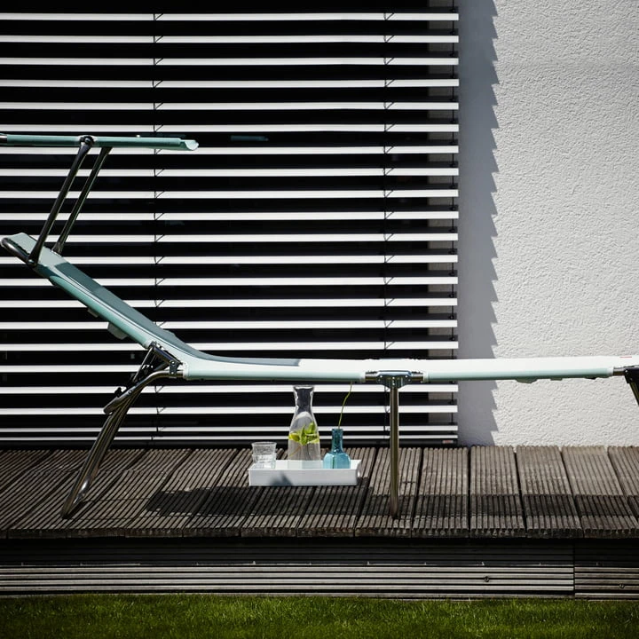 With a height of 42 cm, the fourty makes it easy to lie down and get up. Amigo fourty is easy. The materials used for the aluminium lounger are particularly innovative. The frame is made of aluminium – so it is stable and light at the same time. The cover of the deck chair from Fiam is made of Textilene, a high-tech fabric that is weatherproof and UV-resistant. Textilene is so flexible and air-permeable that comfortable sitting and lying is guaranteed. The modern textile is also easy to care for and clean. Amigo stands extremely stable on its three legs. The backrest can be adjusted to three different positions.