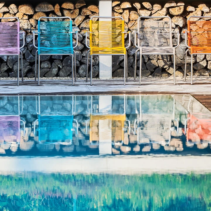 The Mya Spaghetti Outdoor chair from Jan Kurtz convinces with its thread-like design. In combination with its colorful coloring, it ensures a good mood! It can be placed wonderfully in the garden or on the terrace – alone or grouped around a table. The frame of the chair is made of aluminium. The upholstery of the chair is made of PVC.