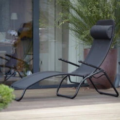 The frame of the sun lounger is made of aluminum is lightweight and folds conveniently and easily. The cover of the sun lounger from Fiam is made of Textilene, a high-tech fabric that is weatherproof and UV-resistant. Textilene is so flexible and air-permeable that comfortable sitting and lying on the outdoor lounger is ensured. Easy to care for and easy to clean, the modern textile is also.