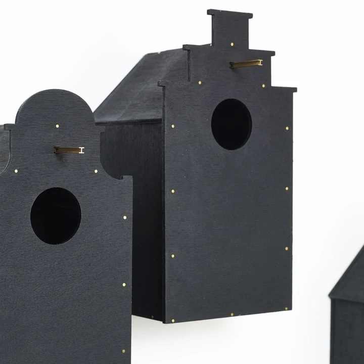 The bird Canal house of Frederik Roijé native birds offers a beautiful home. Inspired by the iconic canal houses in Amsterdam, the birdhouses can be attached decoratively to a tree or wall.
