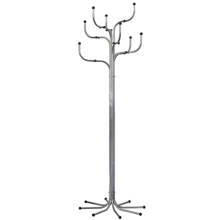 The Coat Tree coat rack was designed in 1971 by Sidse Werner. The clothes rack was part of the Series 9 by Fritz Hansen originally. Coat Tree consists of eight curved steel tubes with pressed plastic spheres.