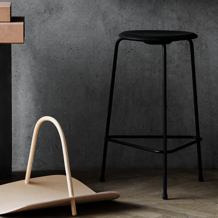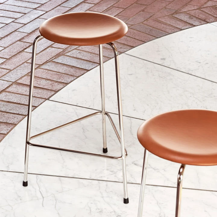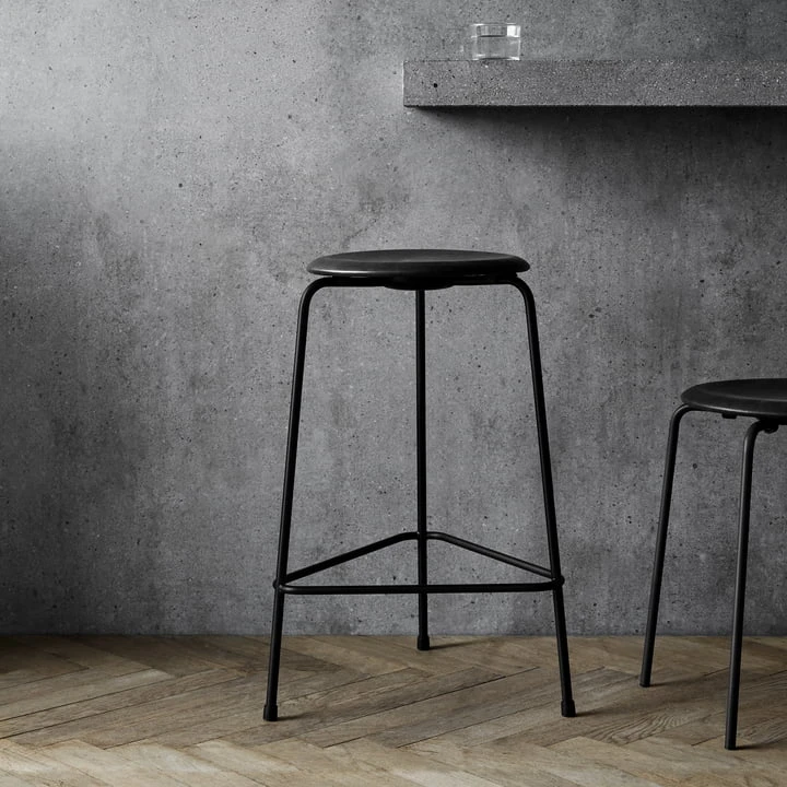 The Dot bar stool by Fritz Hansen is a design by Danish designer Arne Jacobsen, which he created during the design process for the Ant chair in the 1950s. The similarities between the two seating objects are clearly visible, so they can also be perfectly combined with each other.