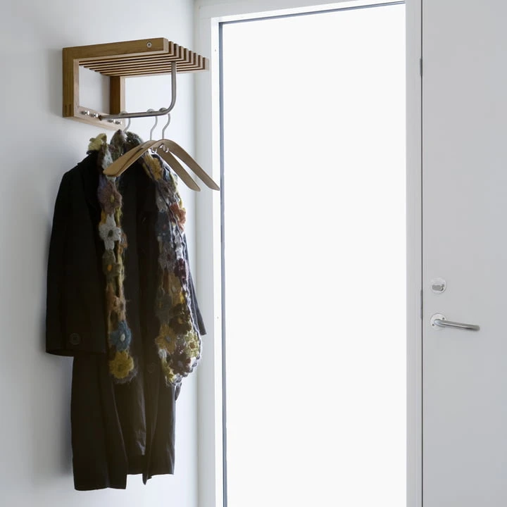 The neat simplicity of the Cutter -series also proved ideal for the hallway, bathroom and kitchen – in fact, for all rooms in the home. That’s why it was expanded to include classic indoor products. The Cutter Minigarderobe is made of either teak or oak. The rod of the Cutter Coat rack is made of stainless steel, which adds a modern contrast to the classic wood look.