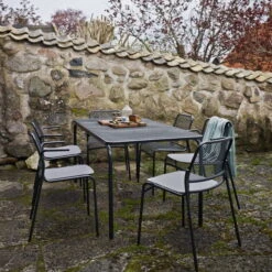 As part of the Mira series by designer Mia Lagerman for Skagerak, the eponymous garden chair inspires with a delicate design and a sturdy construction of powder-coated steel.