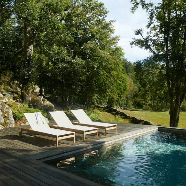 The Pelago Sun lounger from Skagerak is designed for pure relaxation and an aesthetic pleasure. The sun lounger impresses not only with its distinctive, but at the same time discreet design! It is also extremely comfortable and can be flexibly adjusted in five positions. You have the choice – lying or sitting? The expressive yet simple wooden frame made of teak makes it easy to follow the sun and move the lounger accordingly. The weatherproof sling fabric seat adds a modern touch with its lightness.