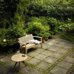 The table is made Regatta Lounge Table is made of teak wood, which is ideally suited for outdoor use. Since the wood is untreated, the surface will patina over time and eventually turn a beautiful silver-gray color. If you want to maintain or intensify the original honey-gold color, use a suitable furniture oil regularly. No matter what you choose, thanks to the high content of natural oils, the wood is resistant to wind and weather. In winter, it is recommended to store the furniture in an unheated room such as a garage or basement.